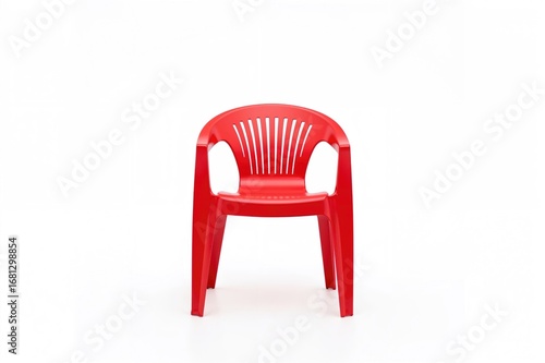 Fototapeta premium Contemporary Crimson Chair Made of Plastic Against a White Backdrop, Facing...