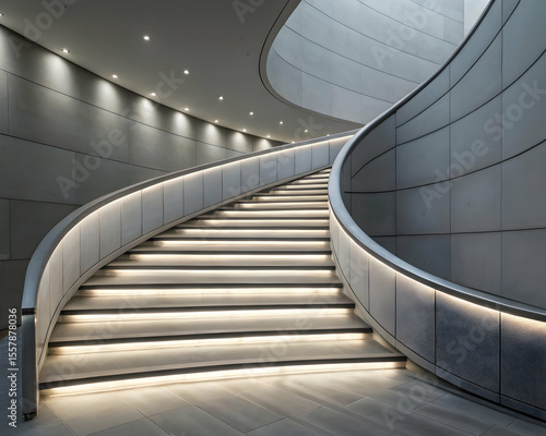 Obraz premium Contemporary curved staircase in architectural gray setting