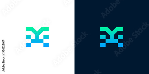 Obraz premium Contemporary digital design concept merging geometric shapes and a vibrant color gradient, symbolizing innovation, connection, and forward-thinking technology solutions