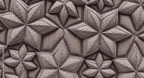 © Selendang, Obraz premium Contemporary Fabric Star Pattern with Stitching Detail Background Texture