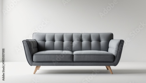 © AIArtistry, Fototapeta premium Contemporary grey fabric sofa on a white background