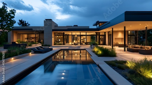 Fototapeta premium Contemporary Home with Integrated Outdoor Lighting