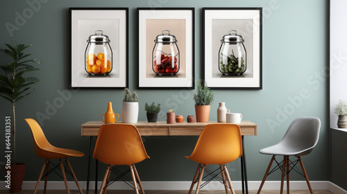 © Floare, Fototapeta premium Contemporary Living at Its Finest: A Modern Room Seamlessly Merging Kitchen and Dining Spaces with a Stylish Table as the Heart of the Home
