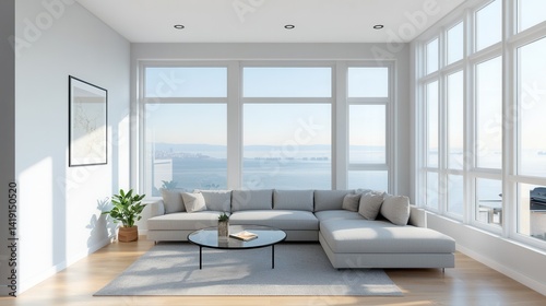 Fototapeta premium Contemporary Living Room with Large Windows and Scenic View