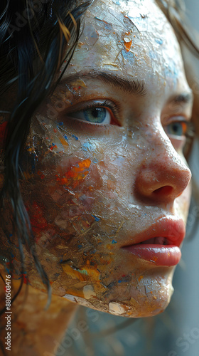 Fototapeta premium Contemporary Low Poly Art Of Beautiful Women Portrait On Blurry Background