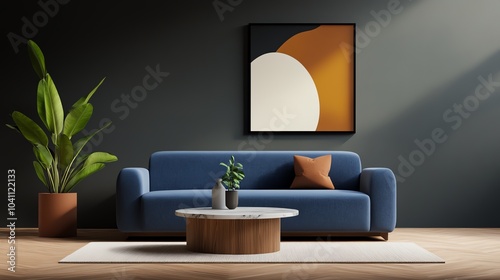 Fototapeta premium Contemporary luxury living room with a velvet sofa, marble accents, and sleek...