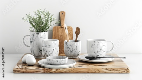 Fototapeta premium Contemporary marble kitchenware on white background, luxurious and elegant