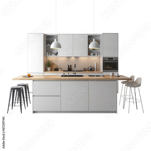 © Thanh, Fototapeta premium Contemporary Minimalist Kitchen with Central Island Design