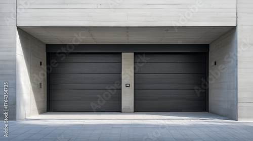 Fototapeta premium Contemporary minimalistic garages with sleek gates. Clean design, modern aesthetics, and functional architecture.