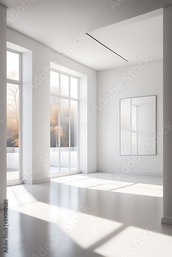 Obraz premium Contemporary modern home with clean minimalist interior, frame mockup for art, and elegant 3D rendering design