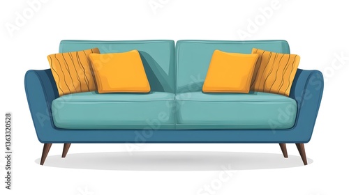 Fototapeta premium Contemporary Modern Sofa for Living Room Interior Design in Semi-Flat Color Vector Illustration