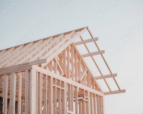 Obraz premium Contemporary residential home construction framework against a clear sky