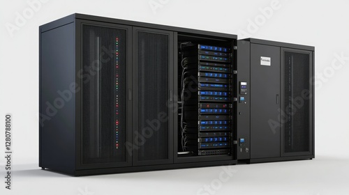 © juliiapanukoffa, Obraz premium Contemporary Telecom Chamber: 3D Visualization of a Cloud-Enabled Data Hub with Advanced Communication Systems