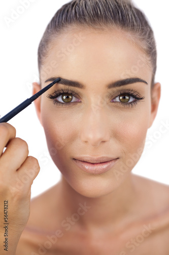 Obraz premium Content woman applying make up on her eyebrows