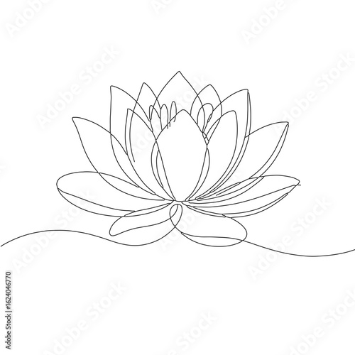 Fototapeta premium Continious line art Lotus Flower Line Drawing – Minimalist Continuous Line...