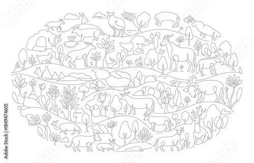 © Tharindu, Fototapeta premium Continuous Line Art Biodiversity Ecosystem Illustration