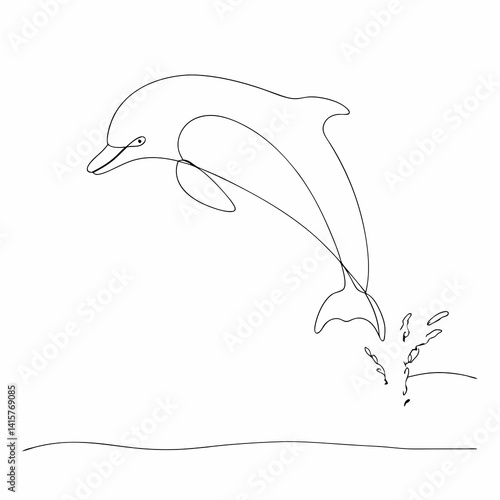 Obraz premium Continuous line art of a leaping dolphin creating a splash, perfect for...