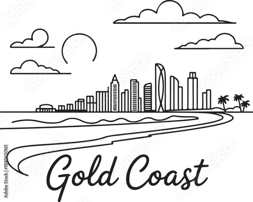 Obraz premium Continuous Line Art of Gold Coast Skyline from Beach View Minimal Outline...