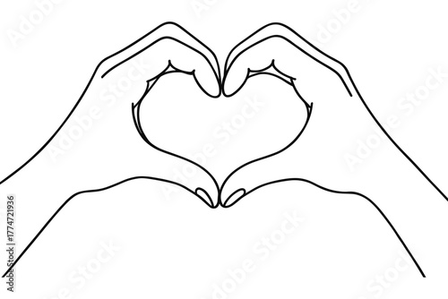 © Cezar_911, Fototapeta premium Continuous line art of hands forming a heart symbol of love and unity