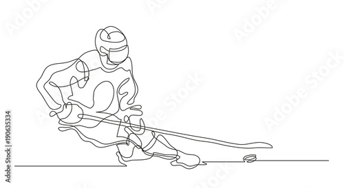© nnv, Fototapeta premium Continuous line drawing. Illustration shows a hockey player in attack. Ice Hockey. Vector illustration