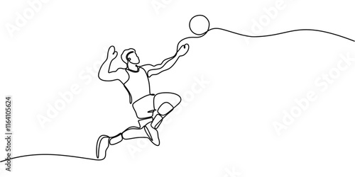 Fototapeta premium Continuous Line Drawing of a Man Playing Volleyball. Showcasing Athleticism and Teamwork