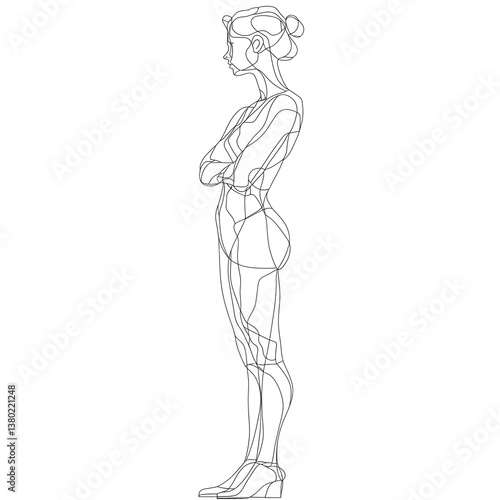 © Eakanan, Fototapeta premium Continuous line drawing of a thoughtful woman standing in contemplation