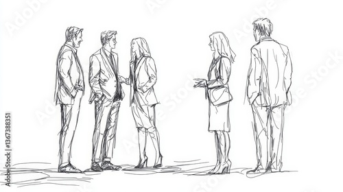 © Snap Fusion, Obraz premium continuous line drawing of business people talking
