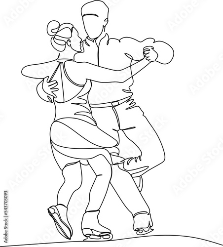 © Yurii, Fototapeta premium Continuous line drawing of figure skating girl and a man doubled up
