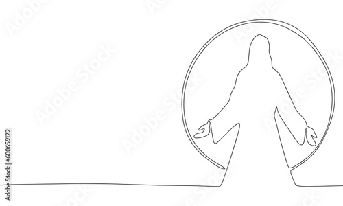 Obraz premium Continuous line drawing of Jesus Christ , linear style and Hand drawn. Silhouette of light and Jesus. Vector illustrations