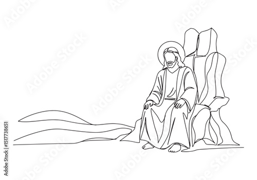 Obraz premium Continuous Line Drawing of Jesus Christ Sitting with Serene Expr