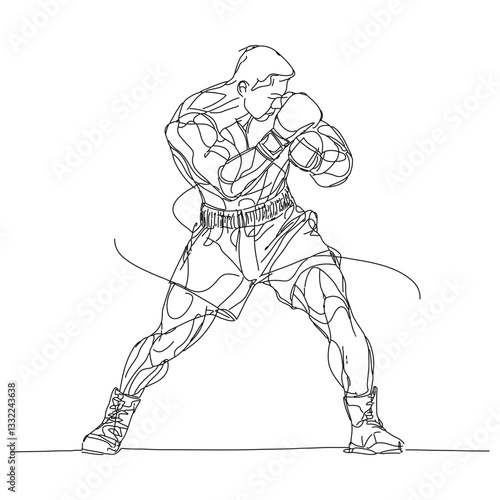 Fototapeta premium continuous line drawing of male boxer in fighting stance wearing gloves
