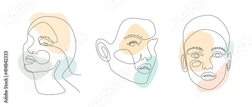Fototapeta premium Continuous line drawing of Portrait of a Beautiful Women's faces with...