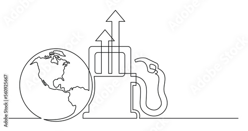 Fototapeta premium continuous line drawing of world planet with gas high prices icon - PNG image...
