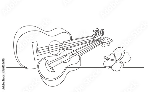 Obraz premium continuous line drawing two hawaiian ukuleles with flower - PNG image with...