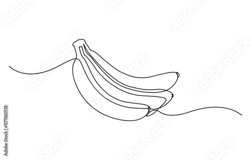 © Domestock, Fototapeta premium continuous line of bananas, banana in continuous line art drawing. One line continuous fresh banana. Outline vector illustration, Vector illustration of banana continuous one line art drawing concept.