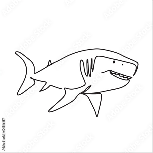 Fototapeta premium continuous line one line aquatic animal shark hand drawn illustration vector