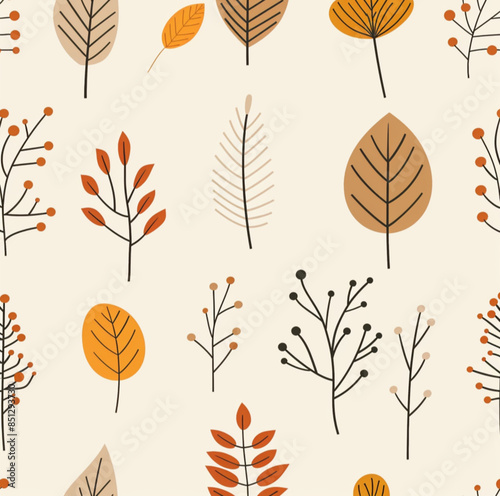 © Eva, Fototapeta premium continuous nordic autumn winter textile pattern for kids, organic, earthy tones, minimal, negative space, nature inspired, dreamy, on cream background