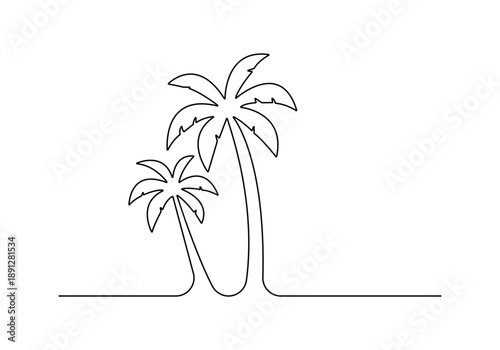 © SHANTA, Obraz premium Continuous one line art palm trees vector illustration