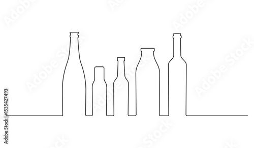 © SHANTA, Fototapeta premium Continuous one line art wine bottles designs