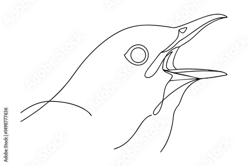 © Joy, Obraz premium Continuous one line drawing of a bird head open mouth