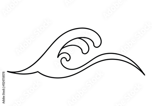 Obraz premium Continuous One-Line Drawing of a Flowing Ocean Wave - Minimalist Nature Art