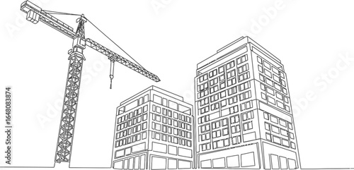 Fototapeta premium Continuous One-Line Drawing of Building with Construction Crane
