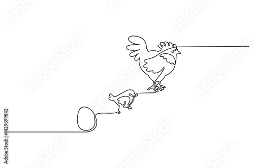 © NVLvibes, Fototapeta premium Continuous one line drawing of Chicken life cycle. Single line drawing illustration of Chicken Growth from egg. Chicken concept vector art. Doodle line illustration.