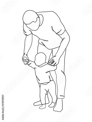 © BunpaengArt, Fototapeta premium Continuous one line drawing of father with baby.