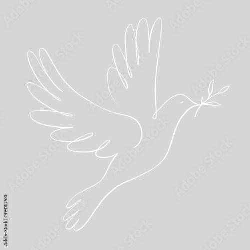 © Oleksandra, Naklejka premium Continuous one line drawing of flying dove holding an olive branch. Peace dove sign and freedom sign concept.
