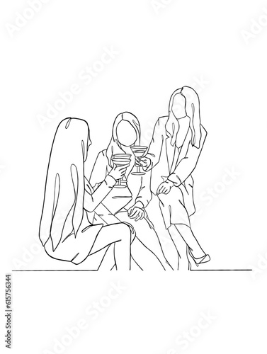 Obraz premium Continuous one line drawing of people cheering glasses of wine. Vector...