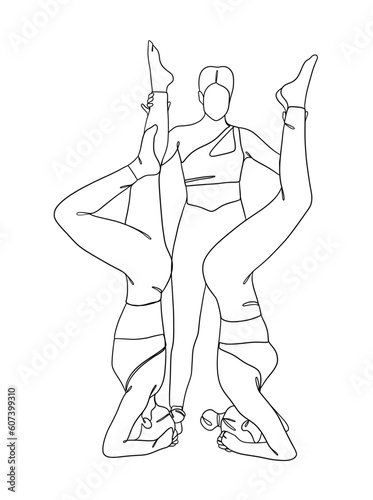 © BunpaengArt, Fototapeta premium Continuous one line drawing of people yoga poses. Vector illustration.