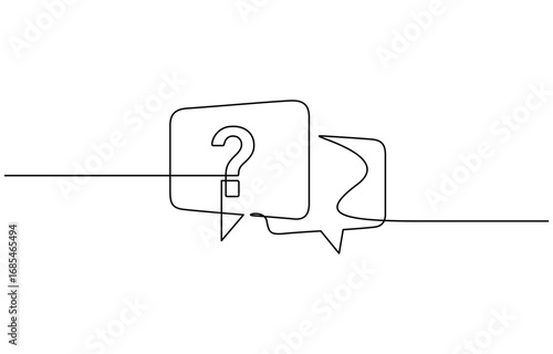 Fototapeta premium Continuous one line drawing of Question mark and speech bubble vector...