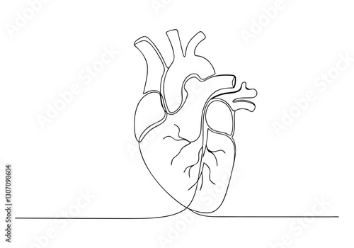 Fototapeta premium Continuous One Line Human Heart | Minimalist Anatomy Vector Illustration