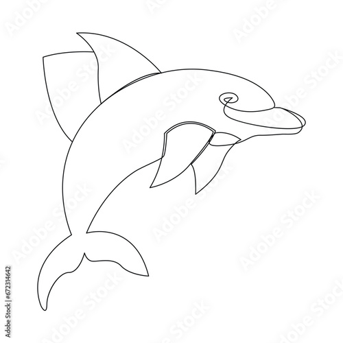 Fototapeta premium Continuous one line of cute dolphin sea fish outline vector art drawing and illustration